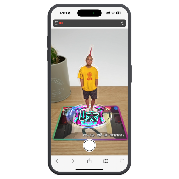 スマホをかざすと、ARで“にーくん”が目の前に! まるで現実空間にアクリルスタンドが出現したような臨場感。 机の上でも、手のひらでも、いつでも会える“にーくん”をお楽しみください。